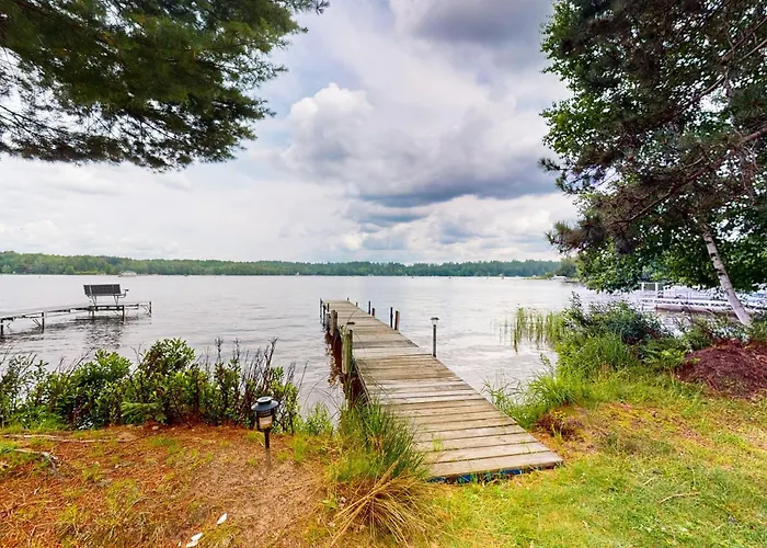 Northwoods Haven, set in Eagle River, is a 5-bedroom venue, featuring a sunny patio with a lake view. It includes a full kitchen and 5 bathrooms.